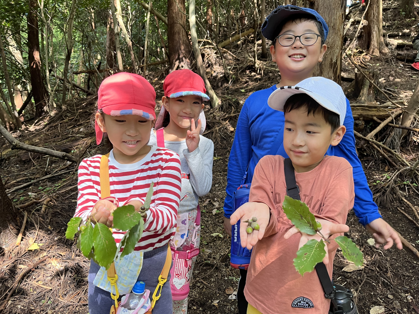 季節によって変化する森を歩き、土や葉っぱに触れ、小鳥の鳴き声を聴き、全身で自然を感じ、子どもたちの豊かな感性を育みます。