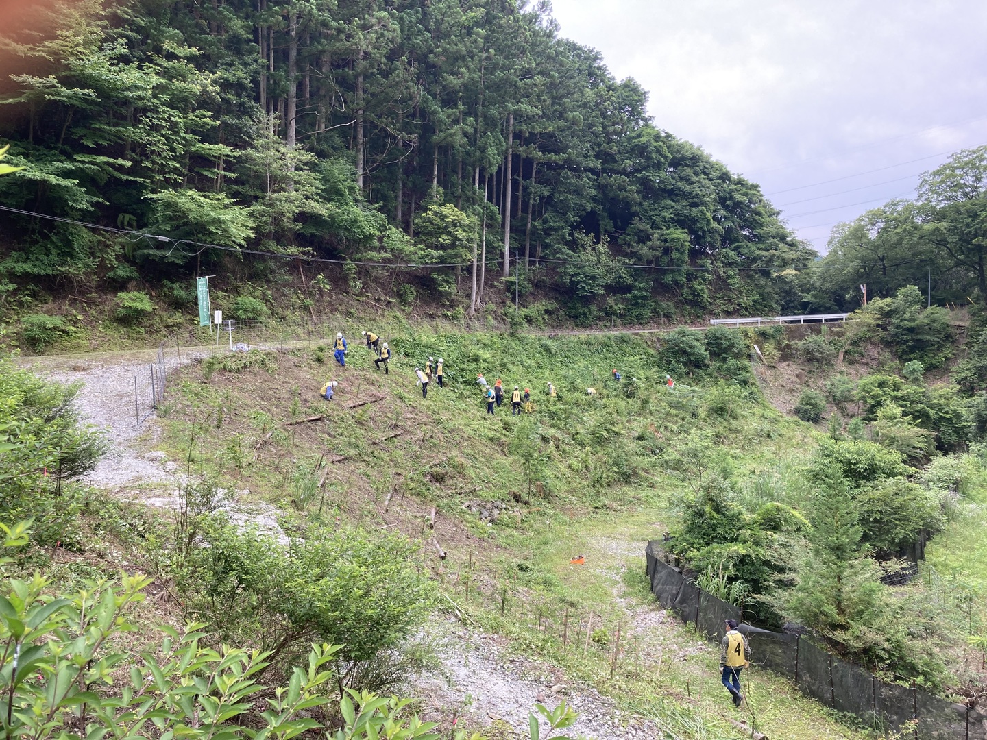 ●しいのき平 スギ林が滝や沢で遊べる明るい広場に!斜面には植樹を行い、多数の方々の協力で除草作業を継続中。スリル満点の丸太橋や潜れる滝つぼも。自由に来て、気ままに遊んでね。