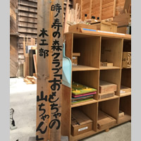 ●山ちゃん工房 山ちゃんが作る木工のおもちゃがたくさん。いつでもだれでも遊べるエリアです。山ちゃんに会えたらラッキー♪トイレ、水道あり。